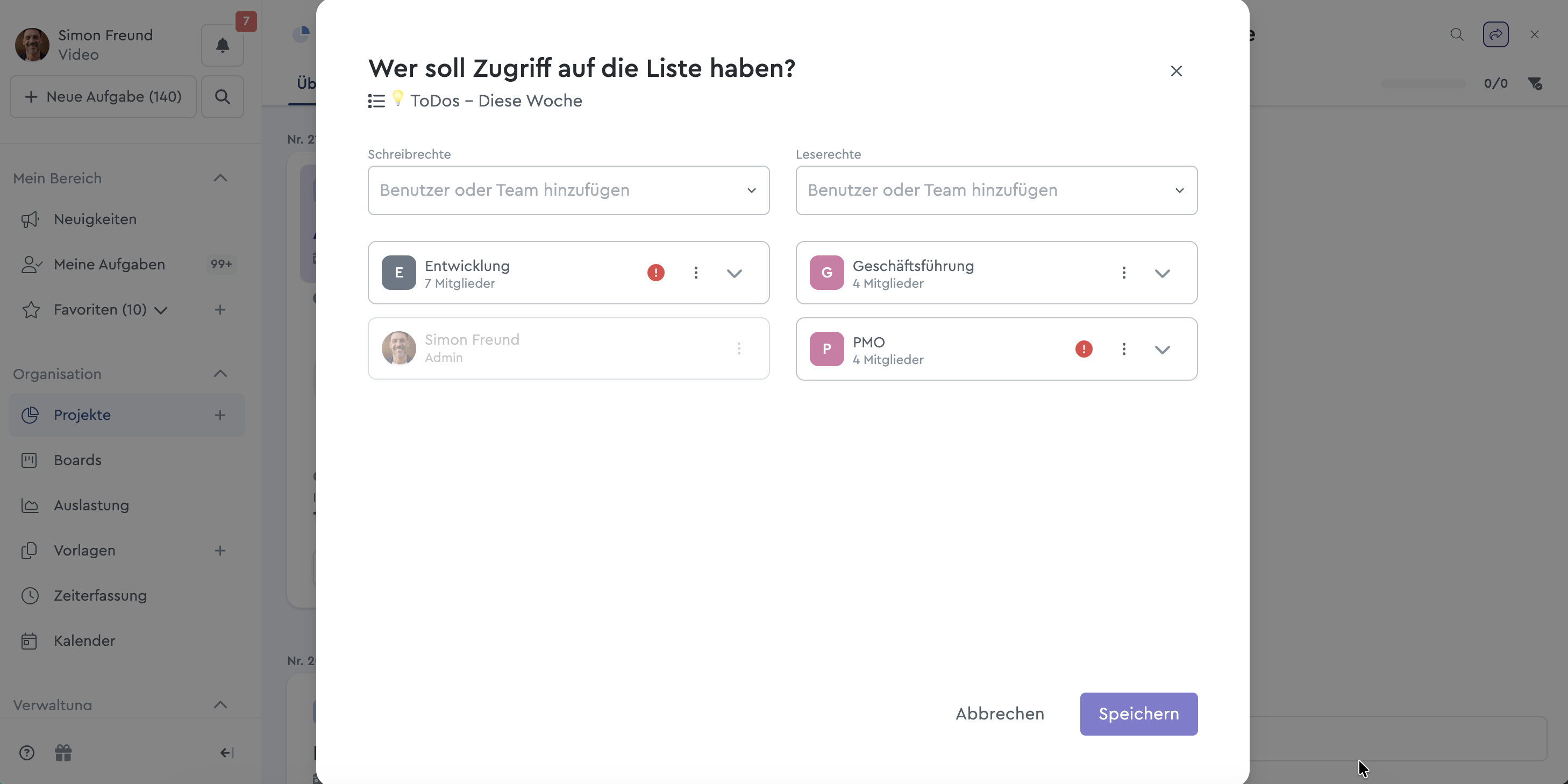 Leserechte kannst Du an Kollegen vergeben, die mithilfe der Listenpunkte nur informiert werden, sie aber nicht bearbeiten sollen. Mit den erteilten Schreibrechten könnt Ihr dagegen kollaborativ die Liste bearbeiten und anpassen oder erweitern.