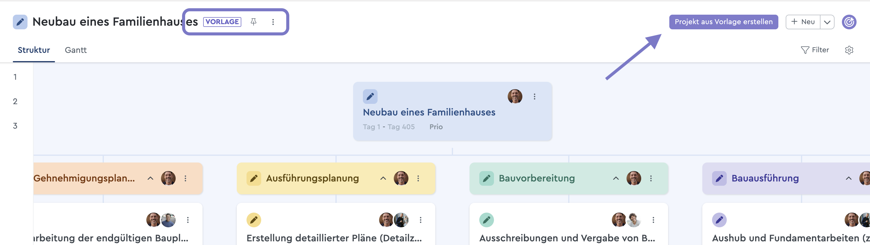 - In diesem Artikel erfährst Du die Mehrwerte der Vorlagen-Funktion – wie kann ich mit Vorlagen Standards fürs Team schaffen und mir als Projektleitung die Projekt-Anlage erleichtern?